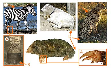 B. At least one digit on each hind foot does not have a flattened nail, but a claw or hoof instead.