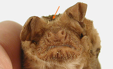 There is a band of skin between the internal margins of the two ears at the base.