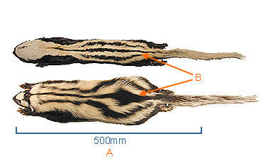 B. The colour pattern of the back is stripes of black and white (or yellow).