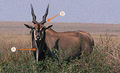 There are 4 species recorded in Tanzania: Tragelaphus strepsiceros (the greater kudu; a female is shown to the right), Tragelaphus imberbis (the lesser kudu), Tragelaphus scriptus(the bushbuck) and Tragelaphus spekii (the sitatunga). These graceful antelope all have white markings on the sides and/or the chest and curved horns (found only on males).
