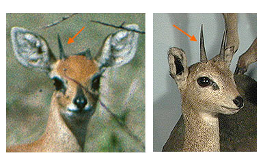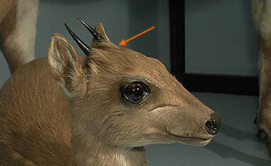 The horns protrude from the skull at an angle from the plane of the face.